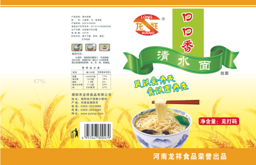 濮陽市龍祥食品有限公司位于河南省濮陽縣戶部寨鎮(zhèn)小濮州,始建于1994年,前期投資200萬元,經(jīng)過幾年的努力,大力開發(fā)市場,由于市場的需求量急劇上升,出現(xiàn)供不應(yīng)求,于2004年擴(kuò)建,建成一座新型的現(xiàn)代化面粉加工企業(yè),并擁有全國先進(jìn)全自動(dòng)生產(chǎn)設(shè)備一套,產(chǎn)量由以前的100噸/天,提高到現(xiàn)在400噸/天。 2012年再次擴(kuò)大規(guī)模申請為濮陽市龍祥食品有限公司,注冊資金500萬元。2012年又投資800萬元新建掛面生產(chǎn)線一條,日產(chǎn)掛面50噸。龍祥食品有限公司現(xiàn)有職工120余人,總工程師1人,專業(yè)技術(shù)人員10人,經(jīng)濟(jì)師1人,會計(jì)師1人,銷售人員2人,優(yōu)秀專業(yè)人員20余人。  龍祥公司自創(chuàng)建以來,社會效益十分可觀。公司一直以“今天的質(zhì)量,明天的市場”為信念,“一切為了客戶需求,竭誠追求完美品質(zhì)”為企業(yè)宗旨,走專業(yè)化經(jīng)營和職業(yè)化管理的路子。